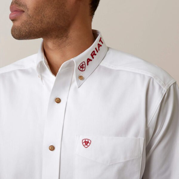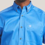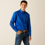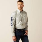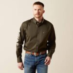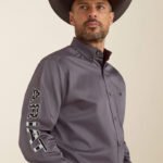 Greater Arm Mobility™ lets you move freely. Enbroidery down sleeve and at collar. Classic button down. With their classic styling and quality construction, our casual shirts stand up to serious wear and look good doing it. This one has bold Ariat branding down on sleeve so you can rep your favorite brand whether you’re riding or hustling through chores.