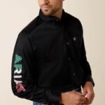Ariat Men’s Team Logo Twill Fitted Shirt Black/White