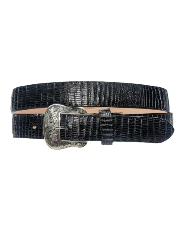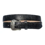 Expertly crafted with a unique hand-tooled print, the Black Lizard Print Belt adds a touch of sophistication to any outfit. Made with high-quality materials, this belt is both functional and stylish, making it a must-have accessory for any fashion-forward individual. Elevate your wardrobe with this one-of-a-kind belt.