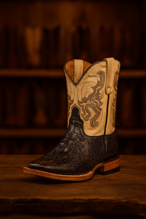 TANNER MARK KIDS Croc Hornback Print Black Cowboy Boots