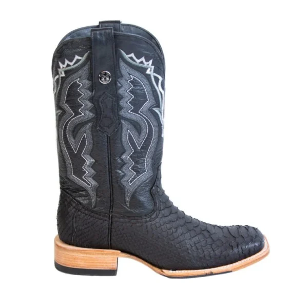 TANNER MARK MEN’S EXOTIC LEATHER Python Matte Black Cowboy Boots With Hybrid Sole